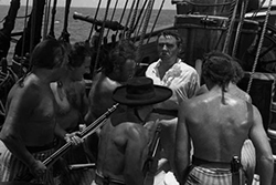 Lloyd valued Franchot Tone’s (as the humane aristocrat Midshipman Byam) understated professionalism and Clark Gable’s (as Fletcher Christian) delight with all things outdoors. Clark Gable, who had won the Best Actor Academy Award the previous year, portrayed the compassionate First Mate Fletcher Christian; with his inspired performance, he solidified his status as one of the leading actors of the 1930s. Charles Laughton disappeared into his villainous character (Captain William Bligh), enjoying the challenge, donning bushy eyebrows which were inspired by Lloyd’s own. Laughton, who had won the Best Actor Oscar in 1933, gave a larger-than-life portrayal of the cruel and arrogant Captain Bligh; he made the character one of the screen’s most memorable and abusive villains. Lloyd and Laughton developed into a mutual admiration society, enjoyed good Scotch together, invented a drink (“The Scotch Bounty”), followed each other’s career and would later reunite in the 1943 “thank-you to England” film, Forever and a Day.